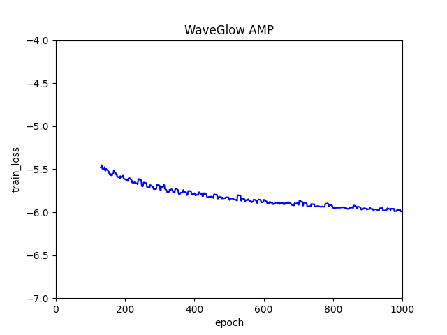 The following table shows the expected training time for convergence for WaveGlow (1001 epochs):